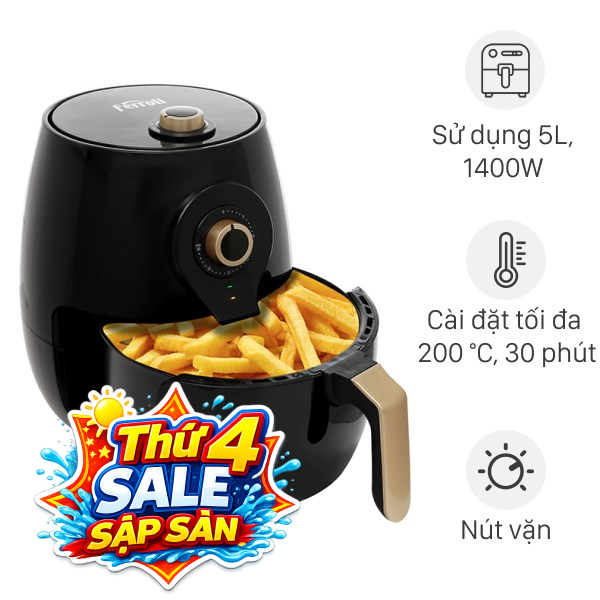Sản phẩm sử dụng công nghệ làm nóng tiên tiến Rapid air kết hợp công suất 1400W, không những làm chín đều thực phẩm nhanh chóng mà còn giảm thiểu đến 80 - 90% lượng dầu mỡ có trong thức ăn.