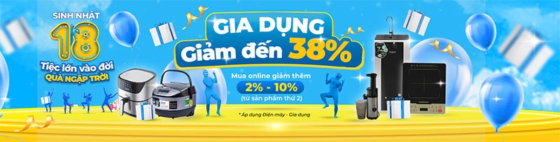 SINH NHẬT 18 - TIỆC LỚN VÀO ĐỜI QUÀ NGẬP TRỜI", các mặt hàng gia dụng ưu đãi cực hấp dẫn, áp dụng tùy sản phẩm: