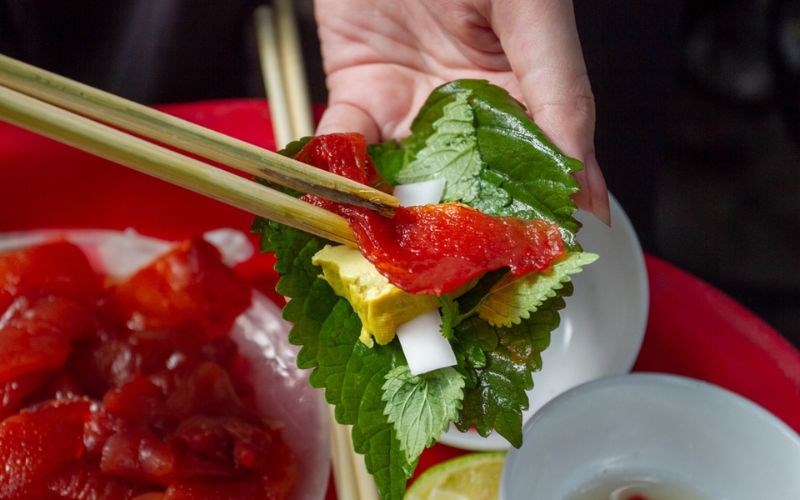 Khác với sứa trắng, sứa đỏ gần như chỉ có một cách thưởng thức duy nhất và ngon nhất: Gỏi sứa đỏ cuốn truyền thống.