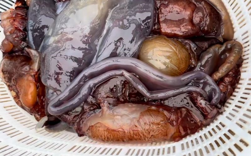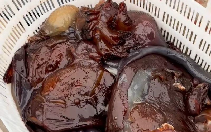 Phần chân (xúc tu): Đây là "tinh hoa" của món sứa đỏ. Hãy ưu tiên chọn những khay có nhiều chân sứa to, cuộn tròn, có màu nâu đỏ sậm. Chân sứa đỏ tự nhiên khi ăn sẽ có độ giòn sần sật như sụn tai heo, rất hấp dẫn.
