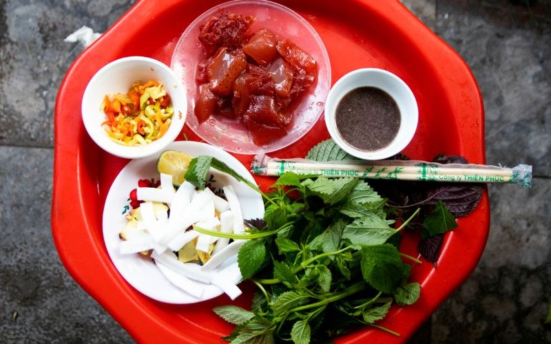 Đây là món ăn giải nhiệt tinh tế của người Hà Nội mỗi khi hè về. Miếng sứa đỏ mát lạnh được cuốn cùng đậu phụ nghệ nướng vàng bùi bùi, cùi dừa già ngậy béo và các loại rau thơm như kinh giới, tía tô. "Linh hồn" của món ăn chính là bát mắm tôm được đánh sủi bọt với chanh, đường và ớt. Sự kết hợp giữa tính hàn của sứa và tính nóng từ mắm tôm, rau gia vị tạo nên một sự cân bằng hoàn hảo về cả hương vị lẫn sức khỏe.