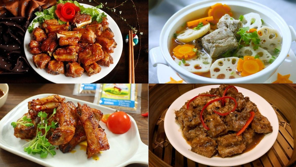 Bạn có thể thử sườn non kho tiêu cay nhẹ, sườn non kho trứng cút béo ngậy, hoặc độc đáo hơn là cá mòi kho sườn non. Những món sườn kho này không chỉ ngon mà còn rất dễ làm, phù hợp cho những ngày bận rộn.
