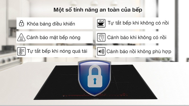 Bên cạnh đó nếu bếp từ Bosch sở hữu chức năng khóa an toàn trẻ em thì bạn chỉ cần chạm tay vào nút có biểu tượng khóa và giữ trong khoảng 10 giây. Sau khi thấy bếp phát tín hiệu thông báo bếp đã mở khóa thành công thì bảng điều khiển cảm ứng từ sẽ hoạt động lại bình thường.
