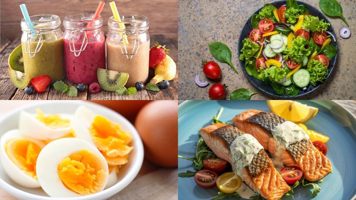 Trứng ốp la (2 quả) hoặc trứng luộc ăn kèm với 1/4 quả bơ (chất béo tốt) và một lát bánh mì đen nguyên cám.