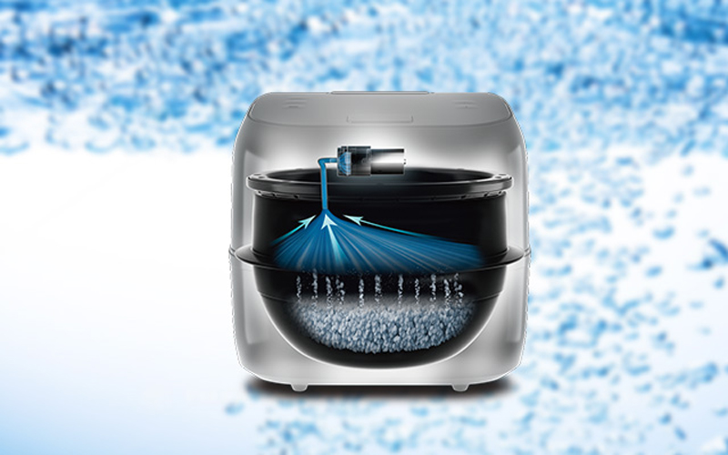 Điểm nổi bật của công nghệ hút chân không là khả năng ủ cơm lâu dài mà không bị thiu. Nồi sẽ tự động hút oxy trong lòng nồi để cơm luôn ấm và tươi ngon trong 40 giờ.