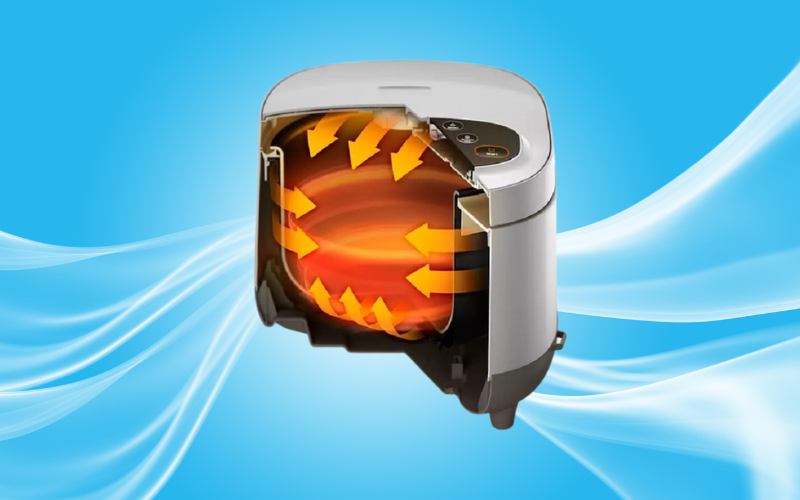 Khi nấu cơm, công nghệ đốt nóng trong duy trì mức nhiệt độ cao và ổn định suốt quá trình. Khi cơm chín, công nghệ này tăng nhiệt độ lên mức cao nhất để khô hết nước trong vòng vài phút. Điều này vừa tiết kiệm điện, vừa làm cho cơm chín ngon, hạt gạo mềm mà không bị bể vì ngâm quá lâu.
