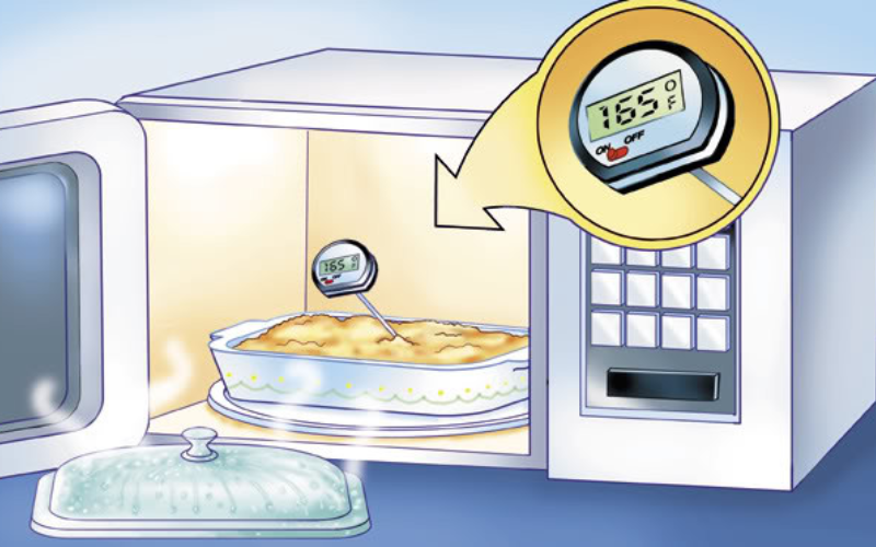 Nhiệt sinh ra do ma sát của sự chuyển động các phân tử thức ăn dưới tác dụng từ trường. Trong lò vi sóng, thức ăn được nấu chín nhanh hơn các cách nấu khác là vì tất cả các phân tử thức ăn đều được làm nóng cùng một lúc, có thể giảm thời gian nấu đến ¾ so với các thiết bị đun nấu khác như bếp gas, bếp hồng ngoại.