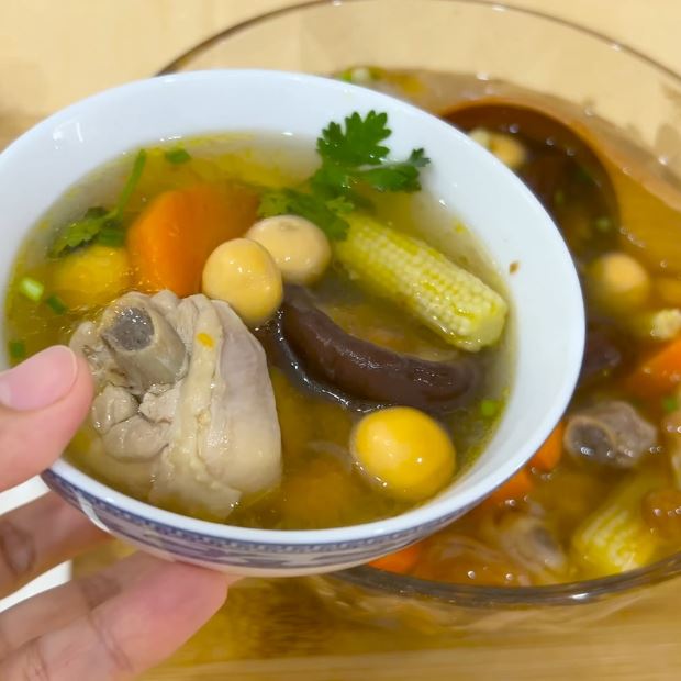 Tìm công thức gà nấu nấm đông cô bắp non bổ dưỡng? Vào bếp ngay với món nước hầm nước dừa tươi ngọt thanh, thịt gà mềm tan. Đảm bảo cả nhà sẽ mê mẩn món ăn gia đình ấm bụng này, đặc biệt khi ăn kèm bún.