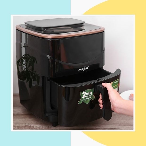 Nồi chiên không dầu kết hợp hấp Magic Eco S05 có công suất chiên 1500W - hấp 900W cùng 14 chương trình nấu được cài đặt sẵn, giúp nấu đa dạng món ăn ngon. Hãy cùng Mẹo vào bếp tìm hiểu về chức năng, ưu nhược điểm, cách sử dụng mẫu nồi này khi chiên gà nhé!