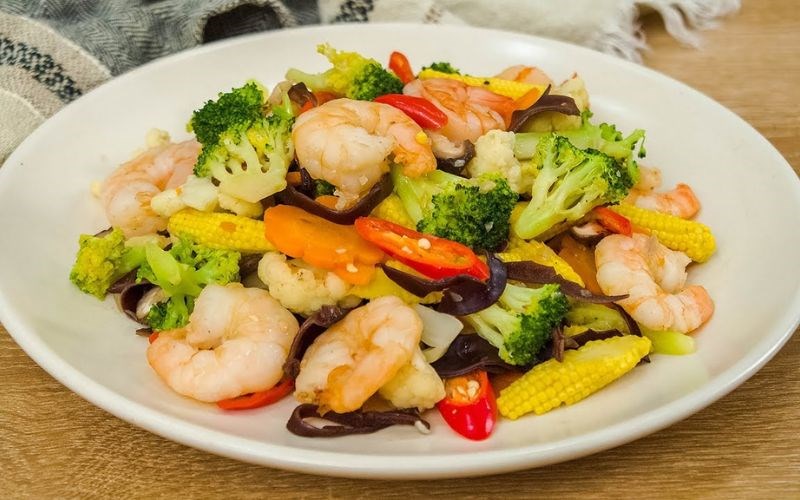 Tôm tươi xào cùng các loại rau củ là giải pháp tuyệt vời cho bữa cơm gia đình nhanh gọn mà vẫn đủ chất.