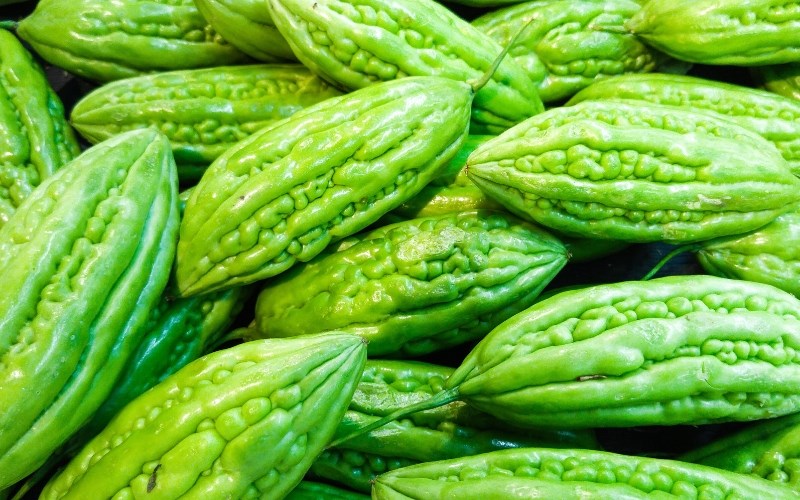 Để chọn khổ qua ngon, hãy tìm những quả tươi, màu xanh đậm, bề mặt sần sùi và không bị mềm nhũn.