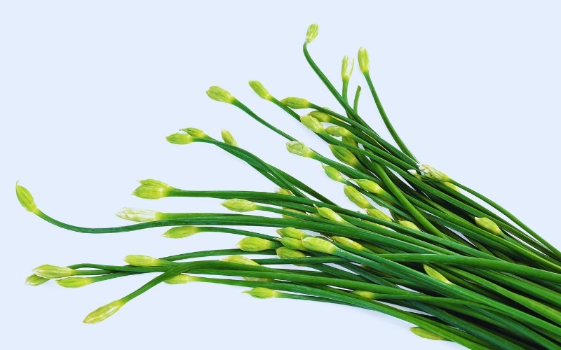 Bông hẹ với đặc trưng giòn sần sật và mùi thơm nồng nhẹ sẽ làm tăng thêm sự hấp dẫn cho lẩu mắm. Vị hăng nhẹ của bông hẹ giúp cân bằng hương vị tổng thể của món ăn. Bông hẹ tươi thường có màu xanh đậm, cọng chắc và không bị dập nát.
