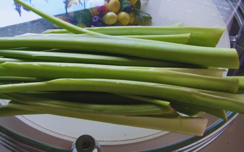Để nồi lẩu mắm thêm phần hấp dẫn, không thể thiếu cọng bông súng đồng, hay còn gọi là súng ma. Cọng nhỏ, dài, sau khi tước vỏ sẽ có độ giòn xốp đặc trưng, hút trọn vị nước lẩu đậm đà.