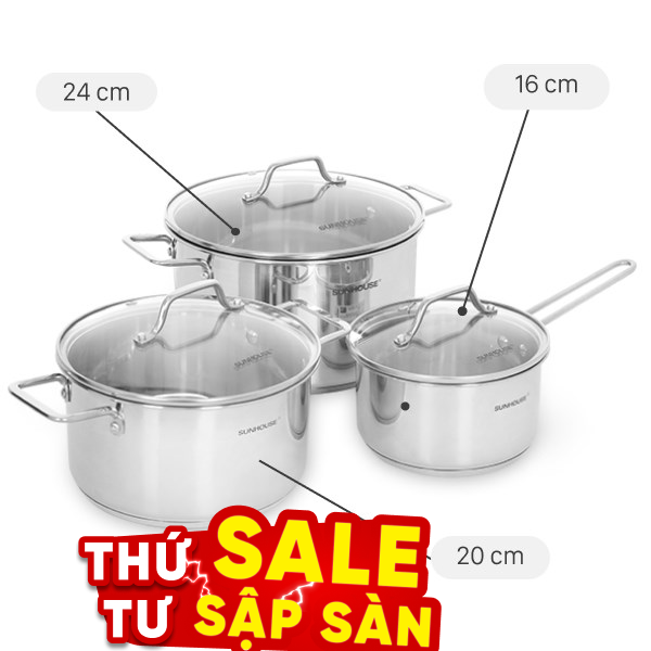 Nồi Sunhouse thường sẽ được sản xuất với nhiều kích cỡ khác nhau như 16, 20 hay 24 cm để phục vụ cho nhu cầu đa dạng củ người sử dụng. Nồi được làm từ hộp kim nhôm, bền cứng và tay cầm bọc nhựa cách nhiệt, rộng rãi nên rất thoải mái, an toàn trong việc di chuyển.