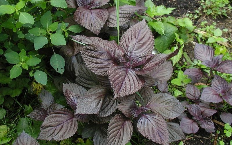 Tía tô gây ấn tượng với màu tím đặc trưng ở mặt dưới lá và mùi thơm ấm nồng, hơi hăng nhẹ. Khi kết hợp với bún riêu, tía tô không chỉ tăng thêm hương vị mà còn giúp khử mùi tanh của hải sản, làm món ăn thêm phần hấp dẫn.