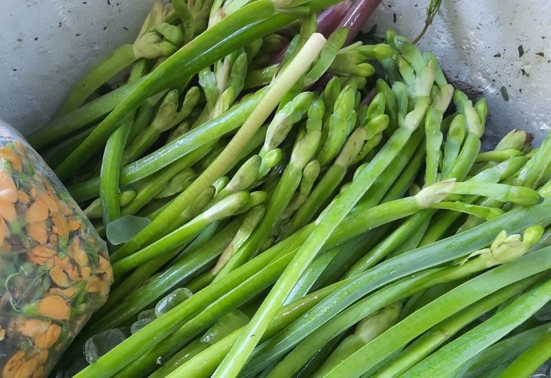 Bông súng là một nguyên liệu độc đáo của canh chua miền Tây, mang đến vẻ đẹp và hương vị đặc trưng. Thân bông súng màu xanh tím, xốp, khi sơ chế và nấu chín có độ giòn nhẹ, thấm vị.