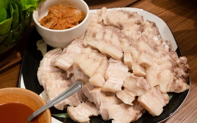 Thịt lợn luộc mang đến cảm giác béo mềm, nhẹ nhàng và dễ ăn. Ba chỉ có sự cân bằng giữa nạc và mỡ, trong khi chân giò lại tạo cảm giác chắc thịt, hơi giòn ở phần da.