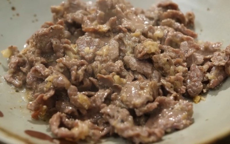 Thịt bò là loại nhân quen thuộc và gần như không thể thiếu trong phở cuốn truyền thống. Thịt thường được chọn từ phần thăn hoặc bắp, thái mỏng để khi xào nhanh trên lửa lớn vẫn giữ được độ mềm và ngọt tự nhiên.