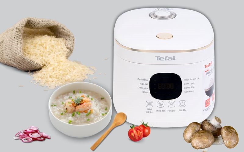 Nồi cơm điện tử Tefal 1 lít Easy Rice Compact RK730168 có công suất nấu 600W, sở hữu 7 chương trình nấu cài đặt sẵn, trong đó có món cháo.