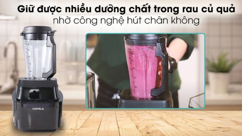 Máy sử dụng bằng cảm ứng hiện đại, chỉ với thao tác chạm nhẹ. Bảng điều khiển được bố trí trên thân máy, với 6 chế độ bật/tắt, xay tổng hợp, xay sinh tố, tốc độ xay thấp, tốc độ xay cao, xay nhồi. Lưỡi dao 4 cánh làm từ chất liệu inox 304 an toàn. Nổi bật với công nghệ hút chân không hiện đại, hạn chế không khí "lọt" vào trong, nhờ đó các chất dinh dưỡng được giữ lại nhiều hơn.