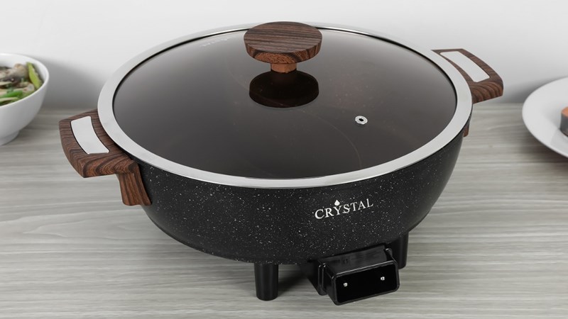 Đặc biệt lòng chảo có thiết kế 2 ngăn giúp bạn có thể nấu cùng lúc 2 loại lẩu hoặc 2 món ăn khác nhau mà không phải tốn nhiều thời gian. Nắp kính chảo rán điện được làm từ chất liệu trong suốt chịu lực, chịu nhiệt, tiện quan sát, giữ nhiệt tốt giúp thức ăn chín nhanh, nóng lâu, giữ được mùi vị thơm ngon.
