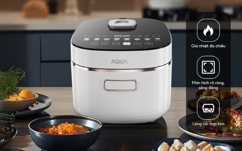 Nồi cơm điện cao tần AQUA AQS-RIH401R(W)-VN được trang bị công nghệ IH (Induction Heating) hiện đại, giúp làm nóng trực tiếp từ lòng nồi thay vì truyền nhiệt gián tiếp. Nhờ đó, cơm chín đều từng hạt, dẻo thơm tự nhiên và giữ được hương vị trọn vẹn.