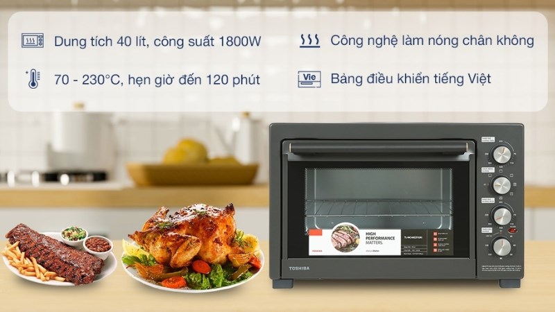 Tiếp tục là một mẫu lò nướng bánh gia đình với dung tích 40 lít khác mà bạn cũng nên tham khảo qua chính là lò nướng thùng Toshiba TL-MC40EZF(GR) 40 lít. Lò có công suất 1800W, nhiệt độ từ 70 - 230 độ C kết hợp công nghệ làm nóng chân không giúp thực phẩm chín nhanh, đều, giữ trọn hương vị.