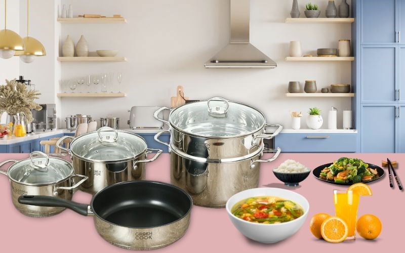 Không chỉ sở hữu thiết kế bắt kịp xu hướng, các chi tiết trong bộ nồi chảo còn mang đến nhiều công dụng. 2 chiếc nồi với kích thước khác nhau phù hợp với những mục đích nấu đa dạng. Trong khi đó, chiếc quánh gọn đẹp có thể dễ dàng cân được những món như cháo, bột trẻ em, soup,...