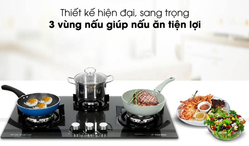 Bếp ga 3 họng có 3 bếp nấu với hiệu suất ngọn lửa 56% vừa giúp tiết kiệm không gian bếp vừa giúp việc nấu ăn trở nên nhanh chóng. Đặc biệt hệ thống đánh lửa IC tạo tia lửa nhanh, dễ dàng thao tác với núm vặn, cùng ngắt ga tự động an toàn khi sử dụng.