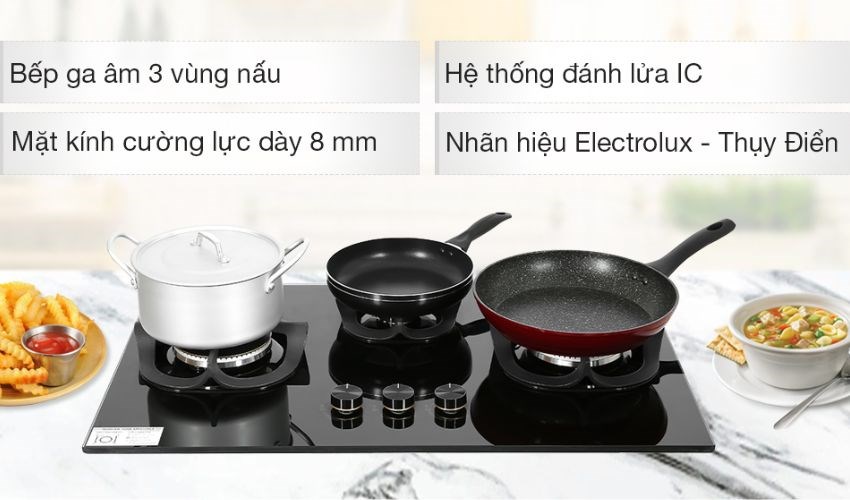 | Bếp ga | Bếp ga âm Electrolux EHG8321BC | Bếp ga âm Torino MILANSBI-3B(SV) |