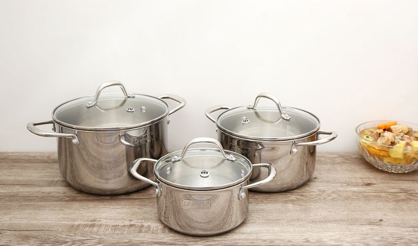 Bộ nồi được thiết kế dày dặn giúp giữ nhiệt lâu, bảo toàn chất dinh dưỡng trong thực phẩm khi đun nấu. Đặc biệt, phần tay cầm được làm bằng inox 201 có bọc lớp nhựa bakelite cách nhiệt tốt, tránh bị nóng, bỏng tay.