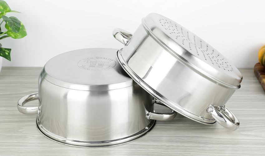 Bộ nồi hấp 2 tầng làm từ chất liệu inox 430 sáng bóng, an toàn cho sức khỏe, dễ dàng vệ sinh sau khi dùng. Bộ nồi có tay cầm cứng cáp, chắc chắn nên dễ dàng di chuyển trong quá trình sử dụng.