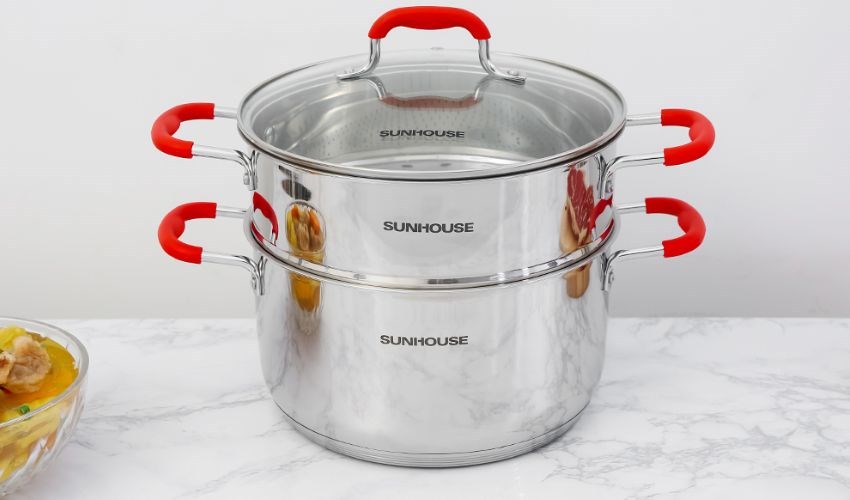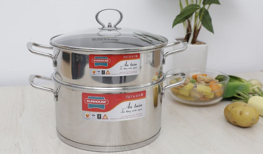Bộ nồi xửng inox 5 đáy nắp kính 24 cm Sunhouse SSP25124 với thiết kế sang trọng, tính thẩm mỹ cao, thích hợp sử dụng trong mọi gian bếp. Thương hiệu nổi tiếng về các sản phẩm gia dụng được phân phối rộng rãi ở 63 tỉnh thành tại Việt Nam.