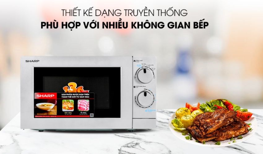 Lò vi sóng Sharp R-209VN-SK 20 lít sở hữu dung tích 20 lít phù hợp cho các gia đình có ít thành viên. Với kiểu dáng truyền thống, đơn giản, dễ dùng cho mọi không gian, kích thước nhỏ nhắn dễ lắp đặt trên kệ bếp, kệ tủ,… phù hợp cho tất cả các không gian nhà bếp.