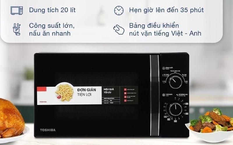 Lò vi sóng Toshiba MWP-MM20P(BK) 20 lít đến từ thương hiệu Toshiba có dung tích đến 20 lít, được trang bị các chức năng như rã đông, hâm. Sản phẩm sở hữu thiết kế ấn tượng với màu đen hiện đại cùng kích thước nhỏ gọn, giúp bạn có thể đặt linh hoạt mọi vị trí trong căn bếp.