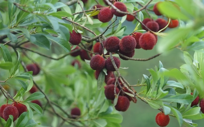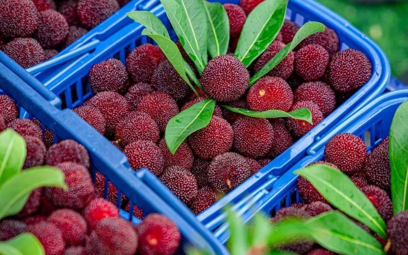 Trái thanh mai, hay còn gọi là Myrica rubra trong khoa học, là một loại quả mọng nhỏ, tròn, có vỏ sần sùi đặc trưng. Khi chín, quả chuyển sang màu đỏ sẫm hoặc tím đậm, mang hương vị chua ngọt hài hòa, rất hấp dẫn.