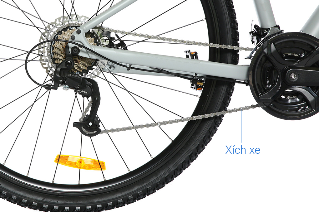Hệ thống truyền động với bộ líp ShunFeng gồm 7 líp sau kết hợp cùng sên KMC cho xe vận hành trơn tru, mượt mà, đáp ứng được mọi địa hình với nhiều tốc độ khác nhau. Giò dĩa 24/34/42T còn giúp xe tối ưu tốc độ tránh mất sức trong quá trình đạp.
