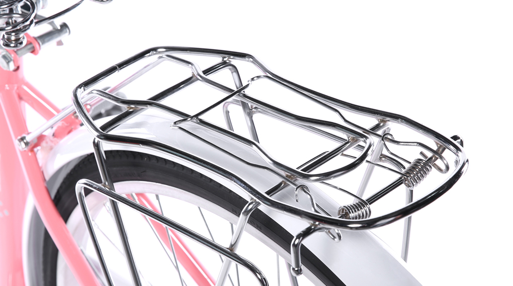 Phong cách thiết kế nữ tính, pha chút cổ điển với giỏ xe thiết kế tinh xảo, đẹp mắt và gác baga phía sau có tải trọng 40 kg thuận tiện trong việc chở người hay đồ đạc. Đặc biệt xe đạp được trang bị thêm miếng chắn bùn hạn chế bùn sình văng lên xe, gây mất vệ sinh cũng như thẩm mỹ của xe và người sử dụng.