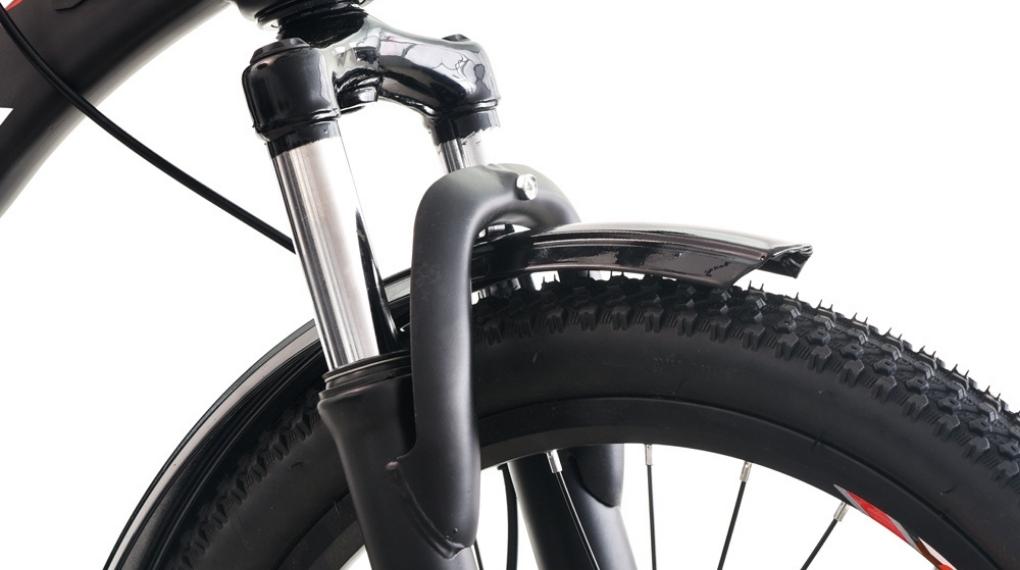 Tự tin vượt địa hình nhờ phuộc trước lò xo, chất liệu thép có hành trình dài 80 - 100 mm mang lại cho xe đạp khả năng hấp thụ xung lực ấn tượng.