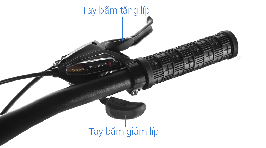 Được trang bị bộ biến tốc Shimano gồm tay đề và bộ đĩa Shimano cùng bộ 7 líp sau Shimano Tourney TZ mang đến cho xe sự chuyển động mượt mà, dễ dàng chuyển số tùy theo địa hình.