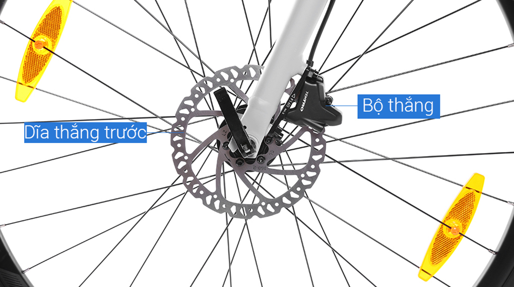 Xe sở hữu hệ thống phanh đĩa dầu bao gồm bộ thắng Tektro HD-R280 và tay thắng Tektro cho cả 2 bánh trước và sau. Phanh đĩa hoạt động tốt bất kể điều kiện thời tiết bất lợi như ẩm ướt, bùn đất, tuyết,… không gây tác động xấu đến vành lốp xe, lực phanh lớn và đều hơn để dễ cảm nhận và điều chỉnh. Đây là những ưu điểm cho thấy độ đáng tin cậy của phanh đĩa dầu so với phanh vành.