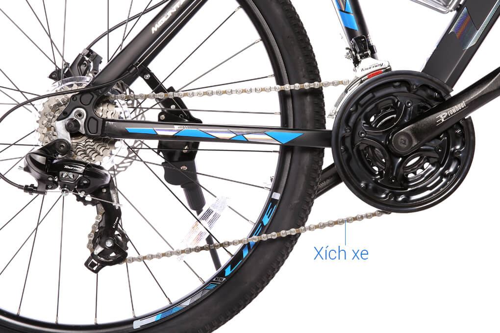 Xe đạp địa hình tích hợp bộ 3 đĩa Shimano Tourney với 8 líp sau vận hành mạnh mẽ. Sên xe PYC - SA kết nối giữ phần đĩa và líp cho chuyển động mượt mà cùng tay đề bấm Shimano Altus 310 giúp bạn dễ dàng sang số, tối ưu tốc độ theo từng địa hình khác nhau.