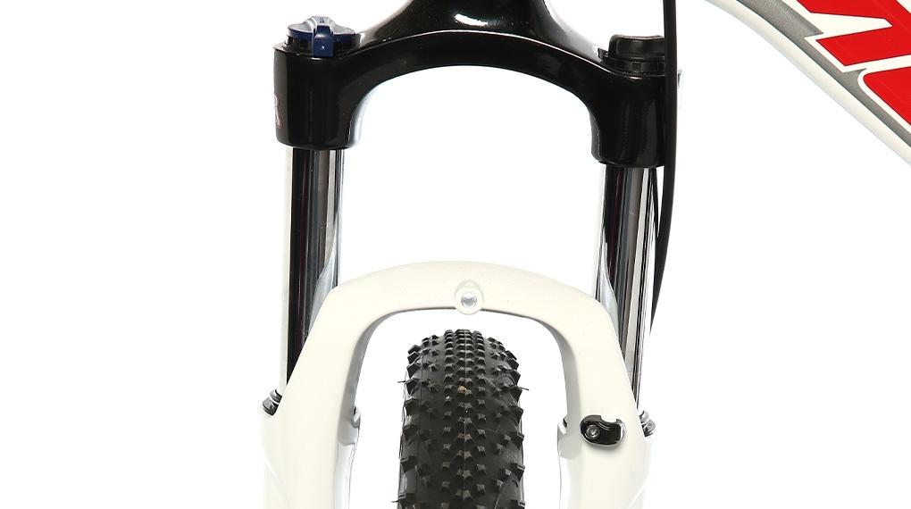 Sở hữu cặp phuộc hợp kim nhôm Suntour bền bỉ với hành trình 100 mm cho khả năng hấp thụ xung lực giúp xe ổn định khi di chuyển trên những đoạn đường gồ ghề, đồng thời giảm lực tác dụng ngược lên người lái khi xe bị xóc nảy.