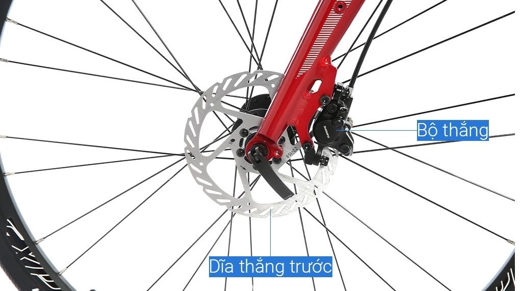 Xe đạp Merida được tích hợp bộ phanh đĩa thủy lực đến từ thương hiệu Shimano nổi tiếng Nhật Bản cùng tay thắng SRAM NX. Hệ thống phanh này có độ chính xác cao và lực bóp nhẹ, giúp người dùng làm chủ tay lái một cách dễ dàng.