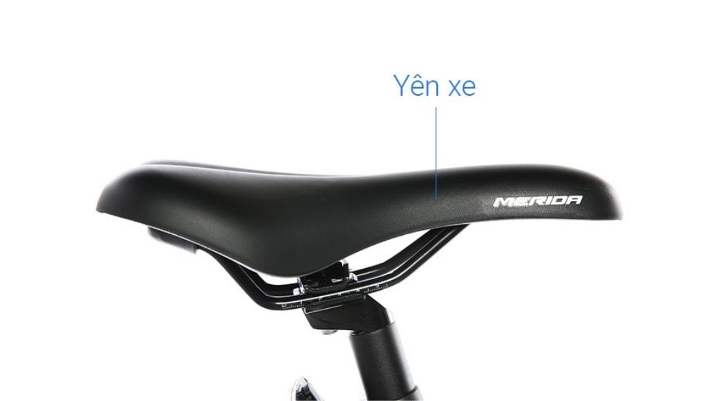 Xe đạp được nhà sản xuất trang bị chiếc yên Merida đệm dày bọc da cùng cốt yên hợp kim nhôm có đường kính 27.2 mm giúp người lái luôn trong trạng thái thoải mái khi đạp xe, hạn chế tối đa tình trạng ê mông hay đau cơ. Ngoài ra, yên xe được trang bị chốt điều chỉnh để bạn nâng lên hạ xuống dễ dàng cho phù hợp với chiều cao của mình.