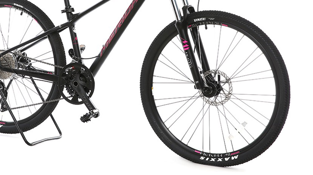 Xe được trang bị lốp hãng Maxxis nổi tiếng với độ dày dặn cao, có nhiều gai bản lớn hạn chế hao mòn và giúp xe dễ bám đường hơn, hạn chế tối đa tình trạng trơn ngã vào những ngày thời tiết xấu. Kích thước bánh xe 27.5 inch phù hợp cho người có chiều cao khuyến nghị 150 - 180 cm, kết hợp cùng vành Merida và căm 14G giúp bộ bánh xe cứng cáp và bền bỉ hơn.