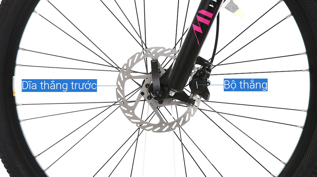 Với bộ phanh đĩa thuỷ lực (phanh dầu) Shimano và tay thắng Shimano Deore có thời gian phản hồi nhanh chóng, nhạy bén trước lực bóp của người lái nên cực kỳ an toàn với xe đạp Merida này.