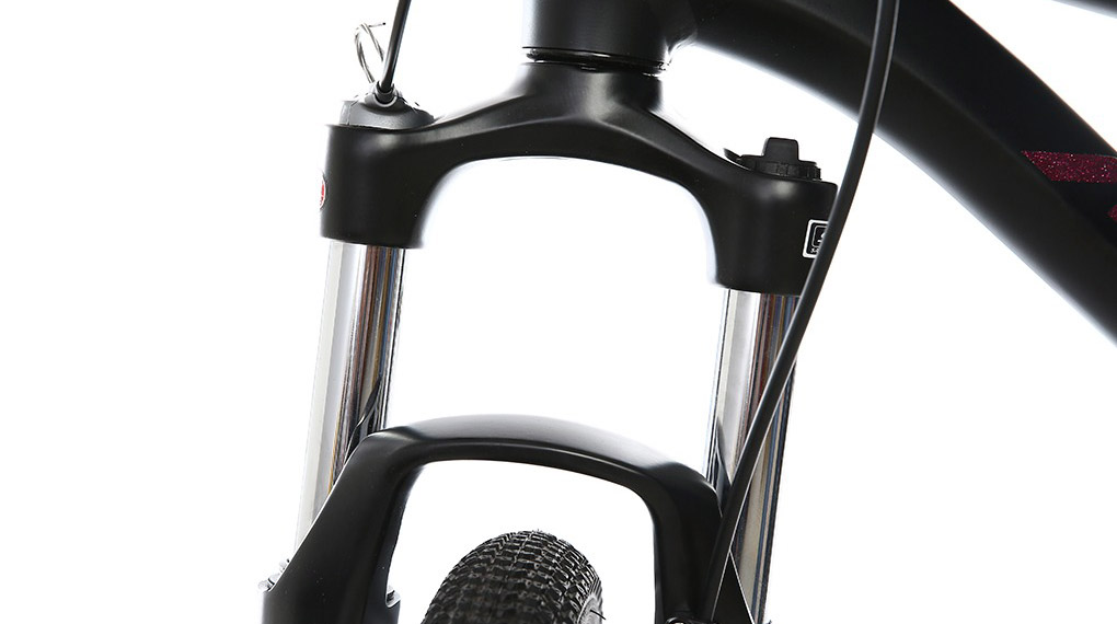 Mẫu xe đạp này được trang bị cặp phuộc trước Suntour chắc chắn, có hành trình phuộc dài 100 mm giảm xóc tối ưu khi đi vào những đoạn đường gồ ghề, xóc nảy.