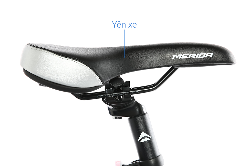 Yên xe chính hãng Merida bọc da êm ái tạo cảm giác thoải mái, đường may tinh tế đẹp mắt. Cốt yên hợp kim nhôm với đường kính 27.2 mm cứng cáp, tùy chỉnh được độ cao phù hợp với mỗi người.