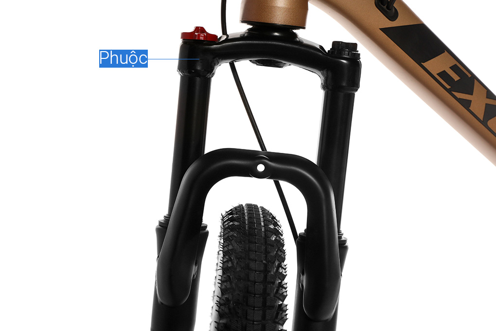 Phuộc trước từ thép trên chiếc xe đạp Exotic này có khả năng hấp thụ xung lực bởi hành trình dài 198 mm, giúp người dùng an tâm vượt mọi địa hình.